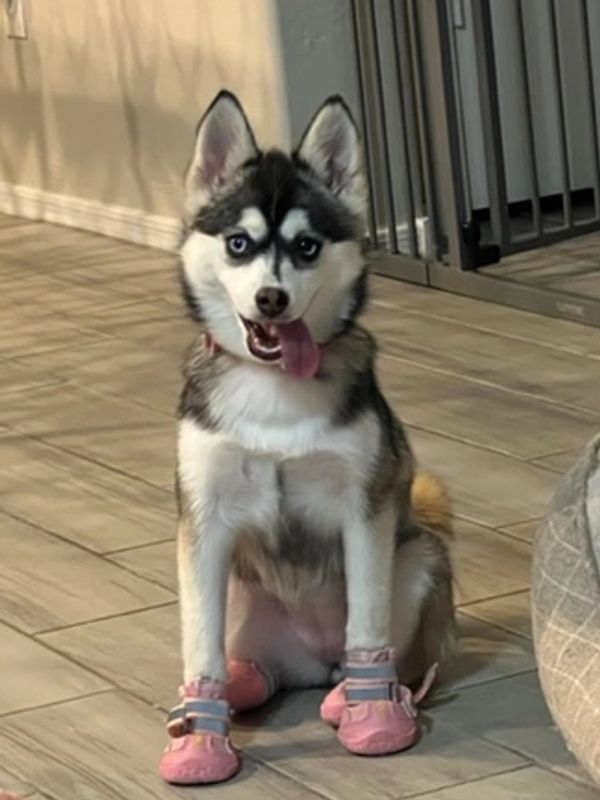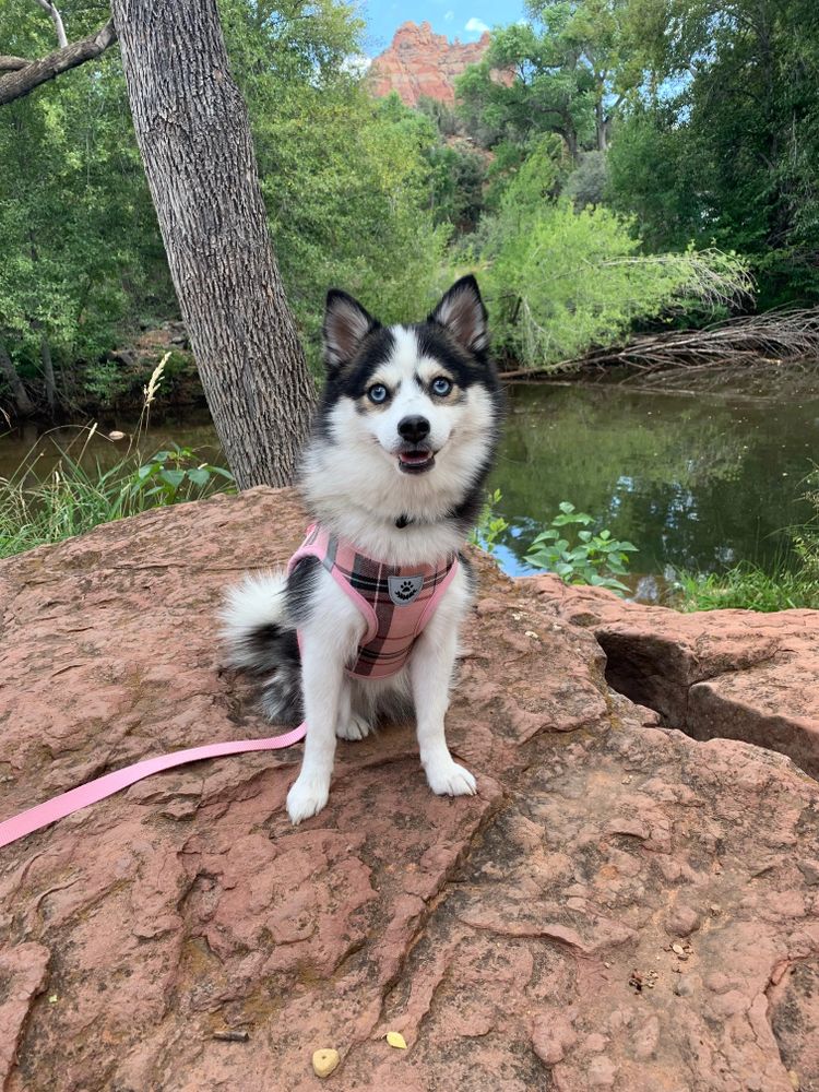 This is Mishka! She is an adorable, easily trained, and loyal girl! She loves to please and is a true Husky at heart! She is a F3 Pomsky. Her breeder is Rose Peek Pomskies and her parents are Hottie and Charm.
